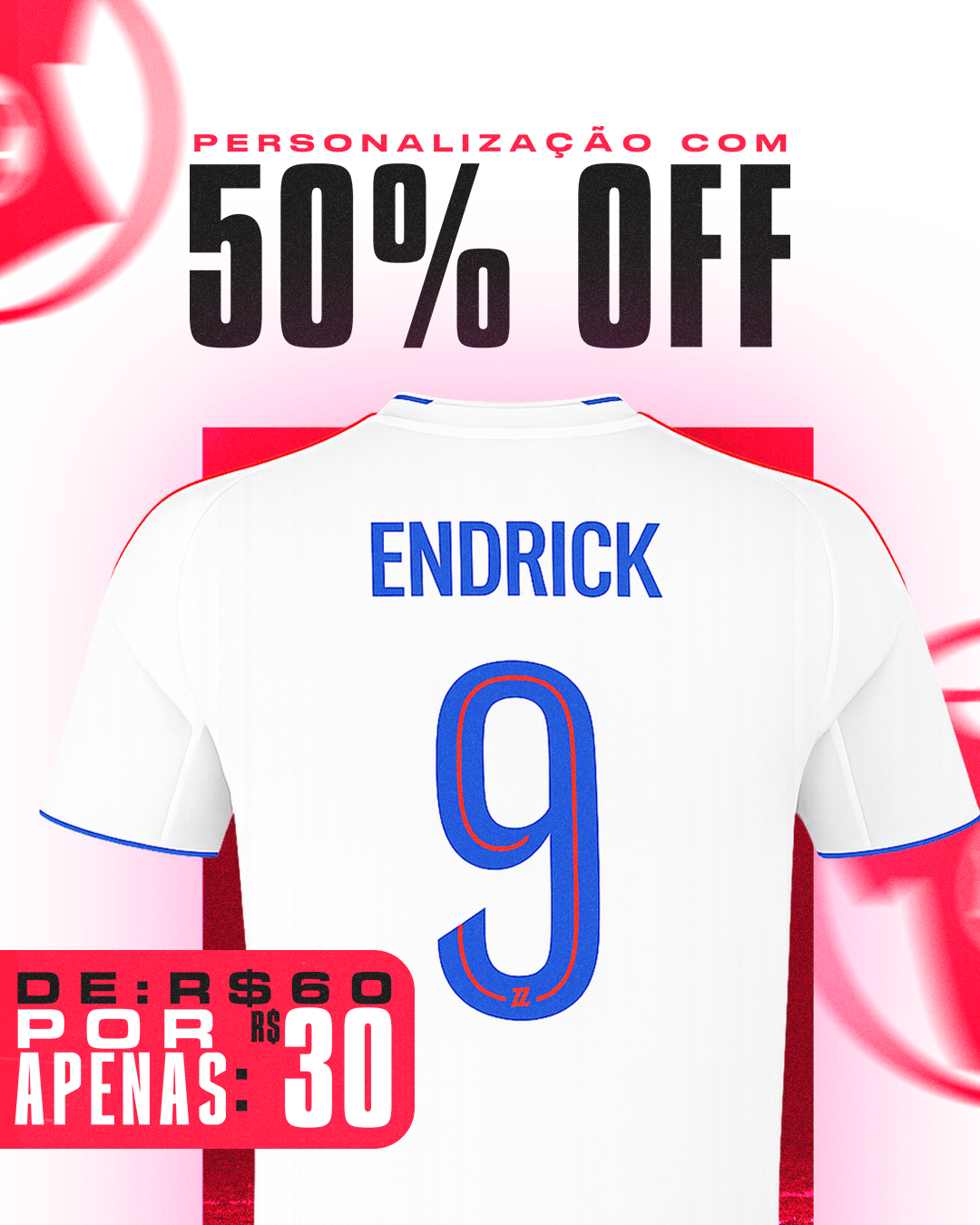 "Personalizar" e preencher nome e número antes de adicionar ao carrinho.